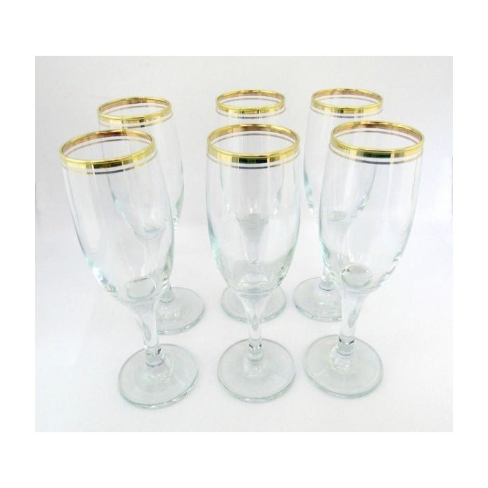 O conjunto de Taças Douradas Fineza é produzido com material que peza pela beleza e pela qualidade dos itens. Possui 6 taças de espumante, em vidro, com dois filetes dourados na borda superior de todas as taças.
