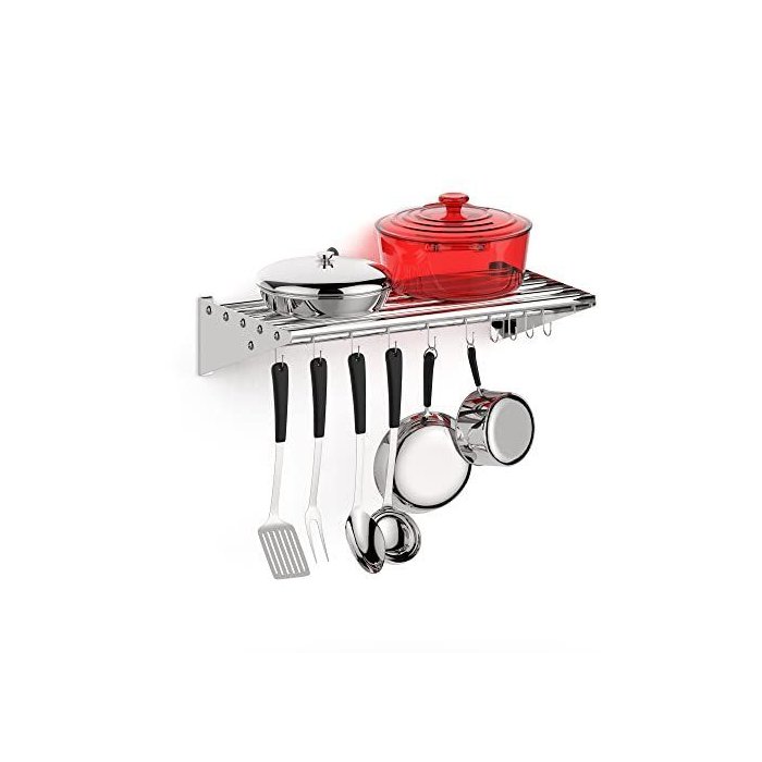 Takywep Suporte de Parede Inox 61cm com Ganchos para Panelas