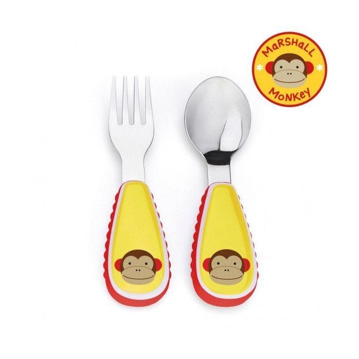 Feito em inox altamente resistente, esse conjunto de garfo e colher combina com os outros produtos Skip Hop, formando um jogo fofo para incentivar a criança a comer junto com seu bichinho favorito.
