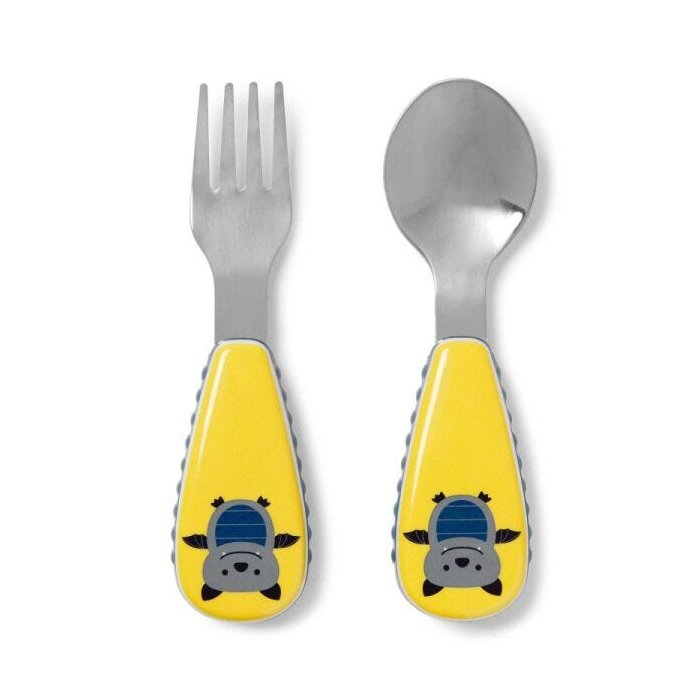 Feito em inox altamente resistente, esse conjunto de garfo e colher combina com os outros produtos Skip Hop, formando um jogo fofo para incentivar a criança a comer junto com seu bichinho favorito.