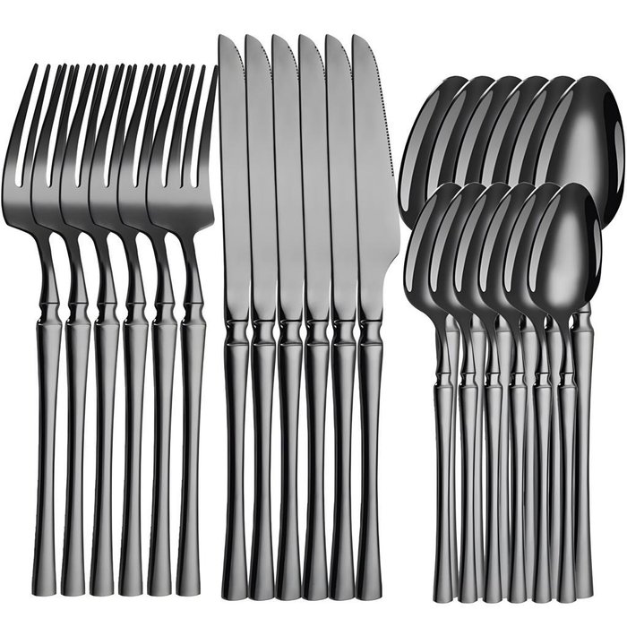 Talheres 24 Peças Faqueiro Jogo De Jantar inox Itens Mesa Posta Buffet Hotel Preto