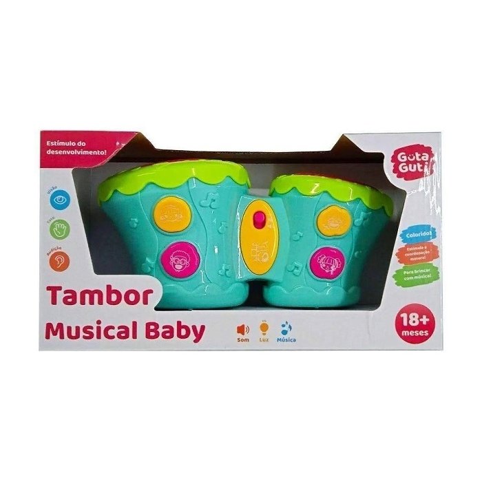 O Tambor Musical Baby contém música, luz, som e cores super divertidas.