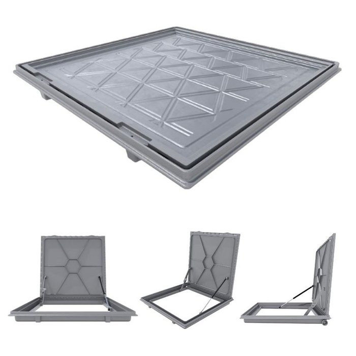 Tampa Casa Máquina Alumínio Rebaixo Invisível Cinza 90x90cm Cinza
