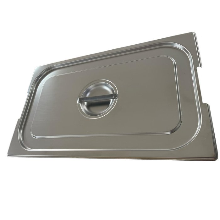 A Tampa para Cuba 1/1 Platinox em Aço Inox com Recorte para Alças é a escolha ideal para manter as suas refeições quentes e deliciosas durante o serviço do seu buffet matinal. Este utensílio foi meticulosamente construído em aço inoxidável, garantindo uma vida útil prolongada e apresentando um design que se encaixa perfeitamente em recipientes com alças, oferecendo praticidade adicional.