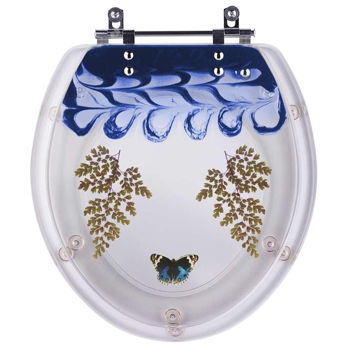 A Tampa de Privada Oval Azul Decorado Avenca Borboleta é a opção ideal para quem busca combinar funcionalidade com elegância em seu banheiro.