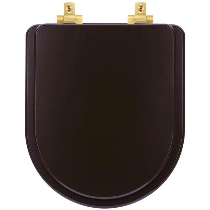 Tampa de Vaso Laqueado Com Fechamento Lento Duna Marrom Fosco para Louça Deca com Ferragem Dourada Marrom Fosco
