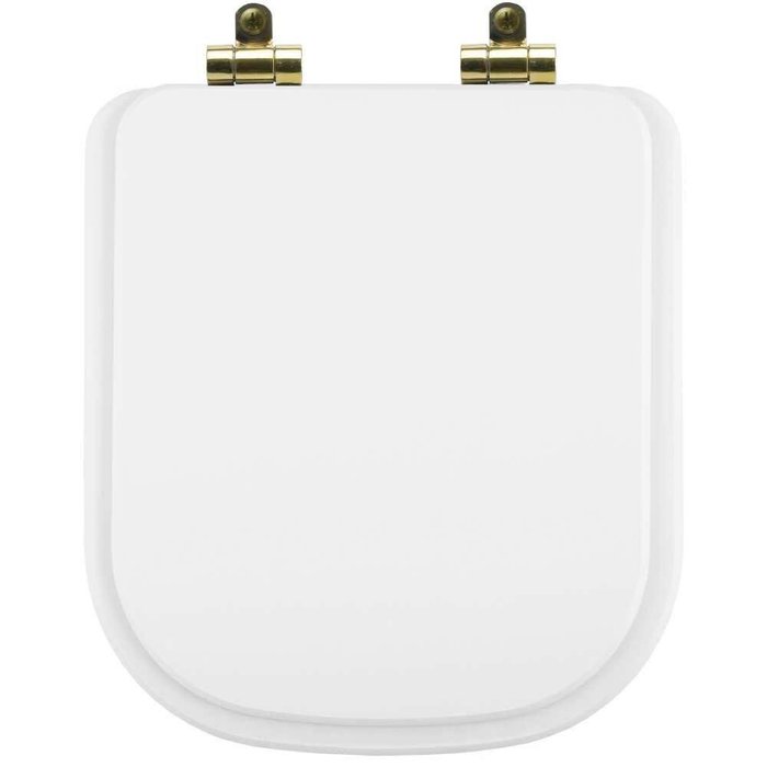 Tampa de Vaso Poliéster Com Amortecedor Quadra Branco para Bacia Deca com Ferragem Dourada