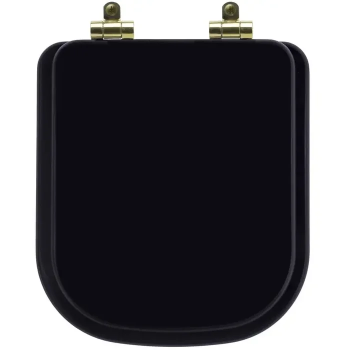 Tampa de Vaso Poliéster Com Amortecedor Quadra Preto para Bacia Deca com Ferragem Dourada