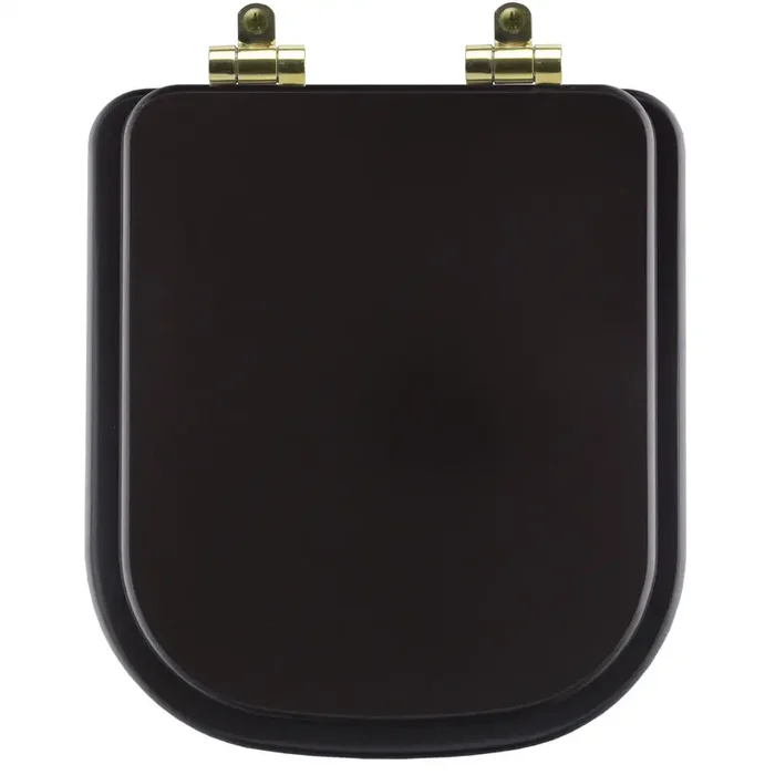 Tampa de Vaso Poliéster Com Fechamento Lento Quadra Marrom Fosco para Louça Deca com Ferragem Marrom Fosco com Ferragem Dourada