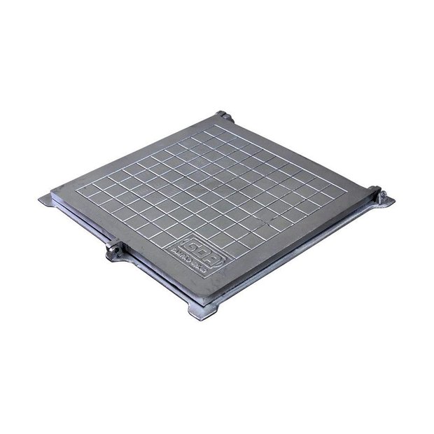 Tampa Tampão Chão Articulado Porta Cadeado Reforçado 50x50cm Projetado para tampar caixas de passagem de tubulação, esgoto, águas pluviais, água potável, redes de telecomunicações, eletricidade entre outros. Facilitando o acesso a válvulas, registros e quadro de distribuição, sua articulação dificulta o furto da tampa que possui um sistema porta cadeado que restringi o acesso a pessoas não autorizadas. Tem um diferencial por ser reforçado suportando mais peso. Especificações Técnicas: