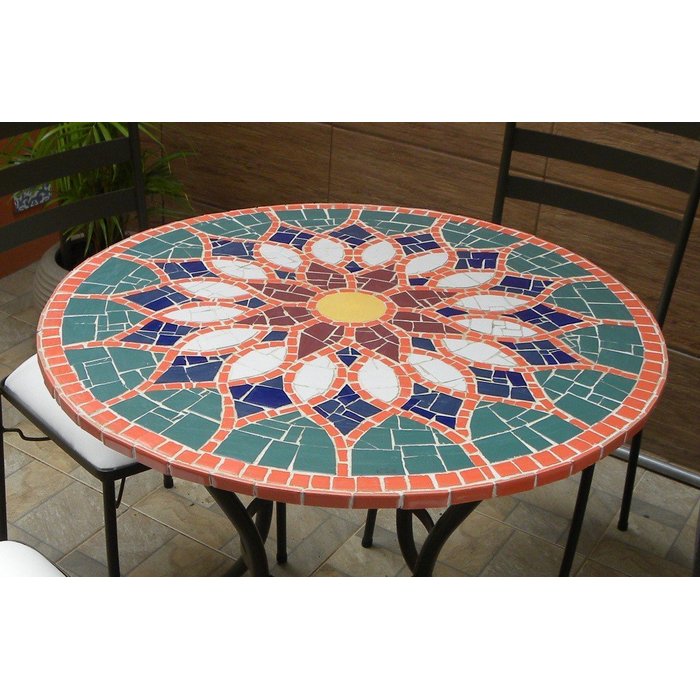 Produto: Tampo de mesa em mosaico feito com cerâmicas e porcelanas sem a base de ferro Especificações técnicas do mosaico:Feito com cerâmicas e porcelanas de alta resistência;Borda com acabamento em mosaico evitando bordas de ferro que dilatam e fissuram a obra;Vem montado sobre uma chapa cimentícia leve, o que permite leveza ao mesmo tempo que alta durabilidade;Resistência e Durabilidade em área interna e externa;Espessura de 20mm – Espessura igual à tampos de mármore ou granitoLiso e agradável para uso diário;Mosaico feito integralmente à mão com técnica do mosaico romano;Feito com estudos de geometria, proporção Áurea, teoria das coresSignificado da mandala:A Vitral Árabe é inspirada diretamente nas decorações do mundo árabe, retirado de desenhos dos palácios reais, ela traz o encanto e o charme do elaborado mundo das artes árabes. Esta mandala é a repetição de um arabesco simples, que retoma a forma sinuosa e pinacular das cúpulas do mundo árabe. O arabesco constitui a combinação de linhas e de cores de formas repetidas num ritmo regular, serve de base à contemplação e permite escapar ao condicionamento temporal. Evoca a idéia do labirinto do qual se atinge o centro após um percurso complicado, cristaliza o resultado do êxito após as jornadas e provações da vida. Esta mandala também lembra o sol com seus raios emanando em todas as direções. Por isso o miolo é amarelo e os raios laranjas, passando por tonalidades neutras até o verde da natureza que recebe a energia e a materializa em alimento na terra. É mandala que traz abundância e bens, bons suprimentos de tudo o que necessitamos abundantemente.
