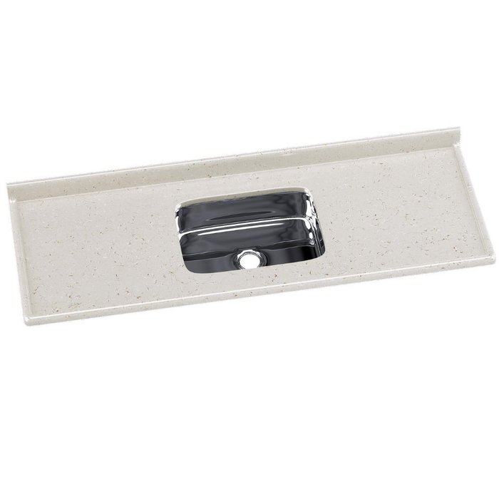 Produto em mármore sintético com espessuras reforçadas, com cobertura granitada de gel coat com brilho e resistência incomparáveis e cuba de aço Inox.