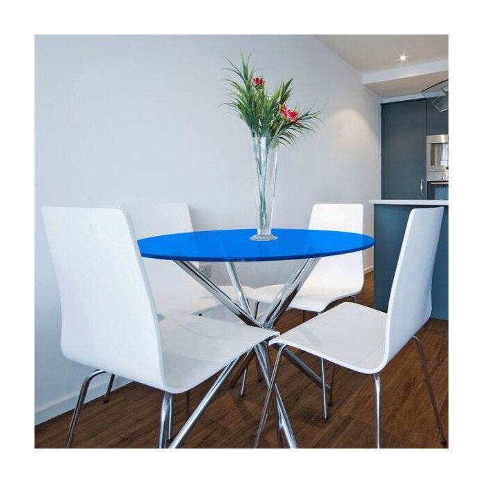 Tampo Redondo de Vidro Temperado Azul para Mesa 90cm 8mm