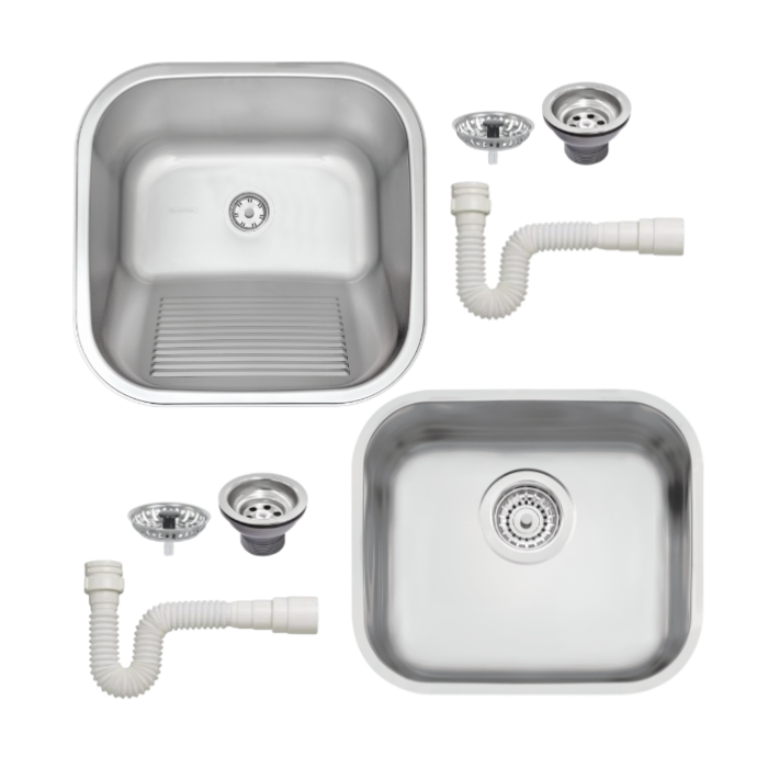 Tanque 40x40 Tramontina + Cuba Inox Tramontina 40x34 Acetinados com Sifão Inox