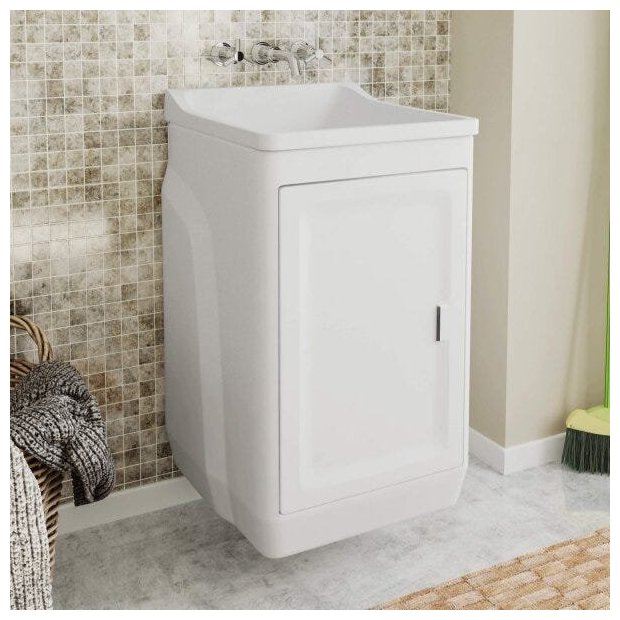 Uma peça compacta, que dispõe de um amplo espaço interno e possibilita o armazenamento e organização de produtos de limpeza. Com cantos arredondados e design moderno, o tanque com gabinete foi pensado para compor com os demais itens de sua lavanderia um ambiente prático e organizado, lembrando que o indicamos tanto para uso interno quanto externo.