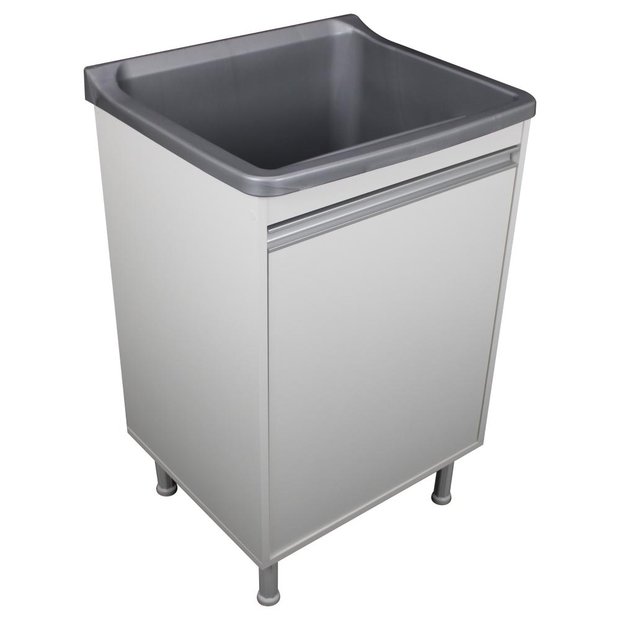 Tanque de Lavanderia 34 Litros Gabinete com Sifão e Válvula Cor:cinza Branco