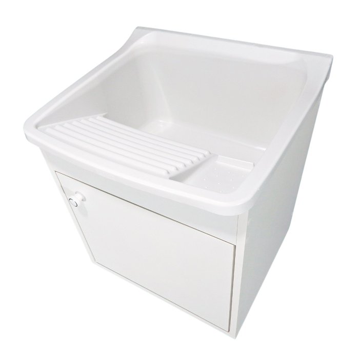 Tanque de Lavar Roupa Pequeno 22L De Parede Gabinete MDF Cor: Branco Branco tanque branco