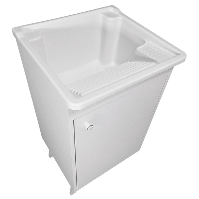 Gabinete MDF Branco com Tanque Plástico 26L e Base para Torneira de Bancada Pés Retrô - Branco -