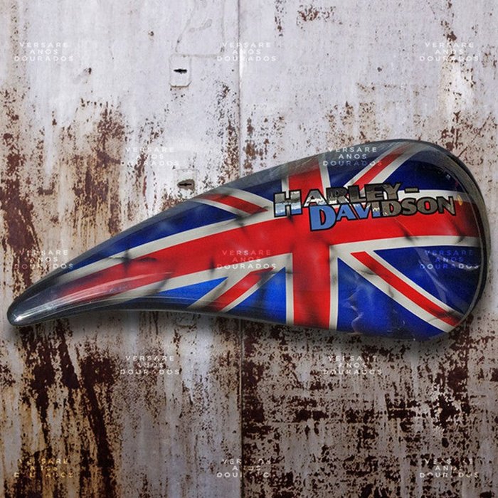 Após alguns anos, a Harley Davidson lançou o seu próprio modelo Café Racer e, para homenagear o fato, criamos o meio tanque decorativo Harley com a bandeira do país onde essa historia começou. Peça perfeita para complementar a decoração de fissurados por motos e todo o universo duas rodas.