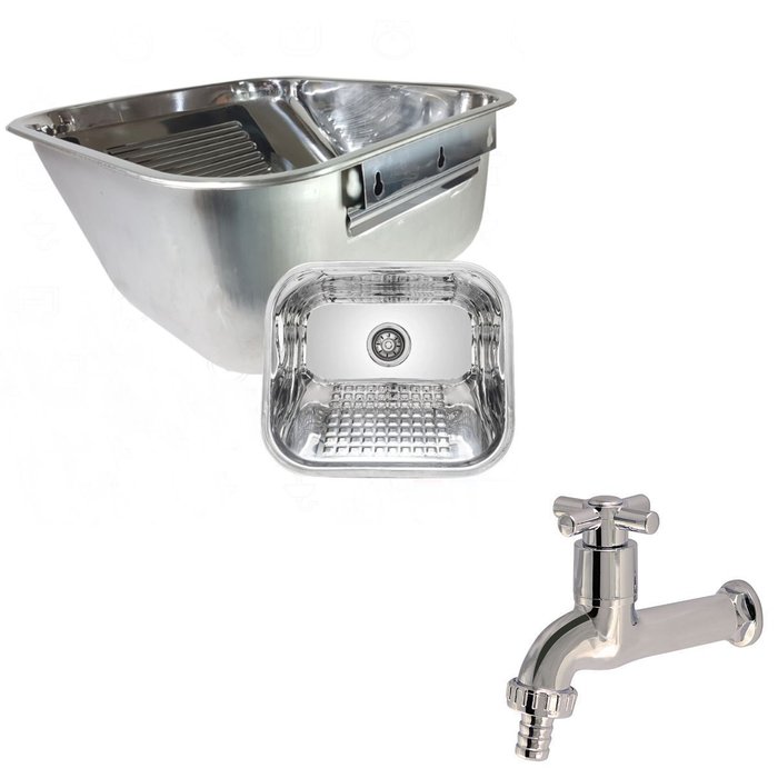 Tanque Inox para Fixar na Parede Parafusado Torneira Parede Inox