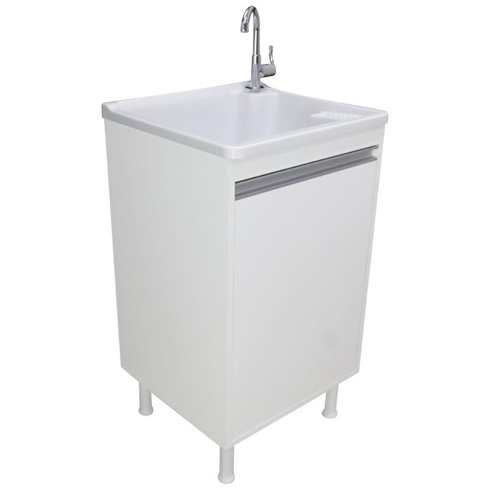 Tanque Lavanderia 26 Litros Torneira de Bancada + Gabinete Cor:branco
