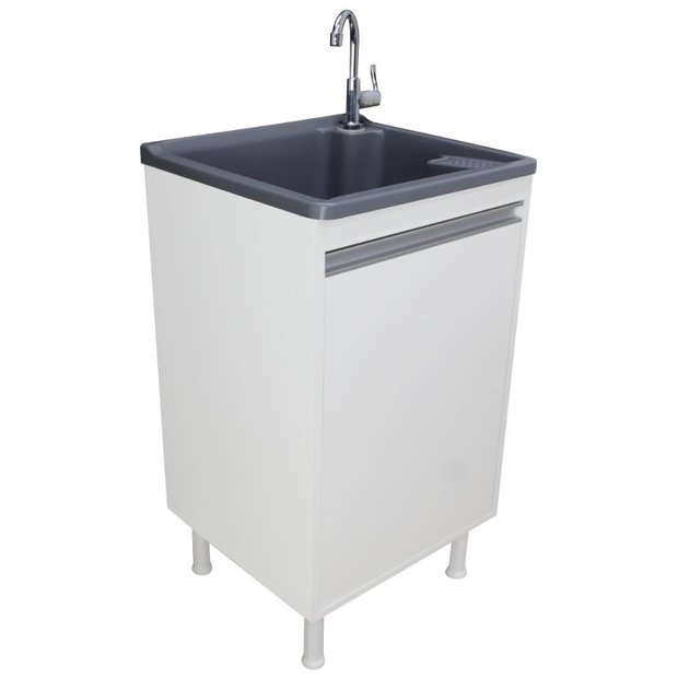 Tanque Lavanderia 26 Litros Torneira de Bancada + Gabinete Cor:cinza Branco