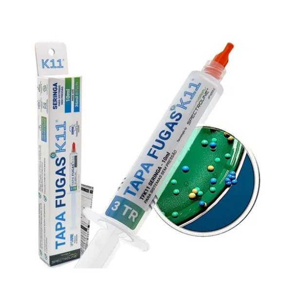 O Tapa Fugas K11 é um selante de máxima resistência, desenvolvido especialmente para eliminar microvazamentos de fluidos refrigerantes. É indicado para uso em sistemas de refrigeração, climatização, hvac-r e ar condicionado automotivo. Este produto é compatível comtodos os tipos de fluidos e lubrificantes, e pode ser usado em equipamentos de todos os tamanhos. O Tapa Fugas é produzido com alta tecnologia e é certificado internacionalmente. Além disso sua fórmula é livre de polímeros. O Tapa fugas K11 suporta diversas necessidades podendo ser usado em equipamentos de até 36000 BTUS.