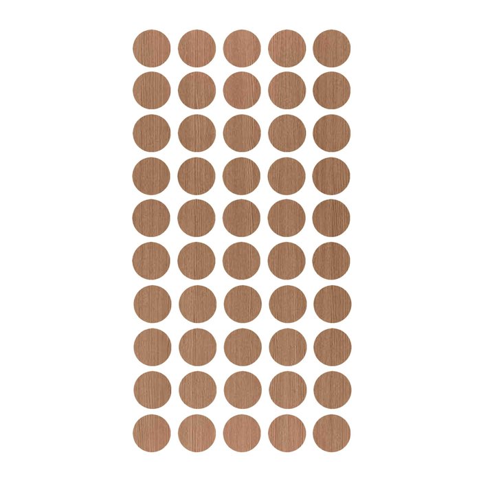 Tapa furo adesivo de PVC, indicado para esconder parafusos e disfarçar pontos de fixação no setor moveleiro em geral, com acabamento que imita a cor do padrão do MDF/MDP desenvolvido pelo fabricante.
