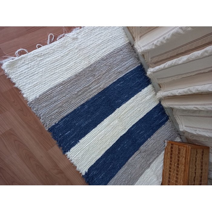 Tapete artesanal, feito em tear, pode ser usado em quarto, closed, sala pequena, escritório e muito mais. Contém: 1 Tapete felpudo 100x150cm de Algodão Pode ser lavado na Máquina, na função delicado. Não é antiderrapante. NÃO estão incluso demais itens e produtos para a ilustração da foto, como a manta, almofada, etc..