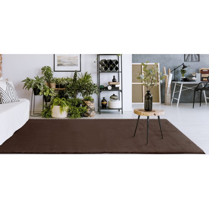 Aconchego é a melhor definição para esse tapete. Estilo pele de coelho, tem toque muito macio proporcionando conforto e a agradável sensação de satisfação. Confeciconado 600 gramas por metro quadrado e base antiderrapante.