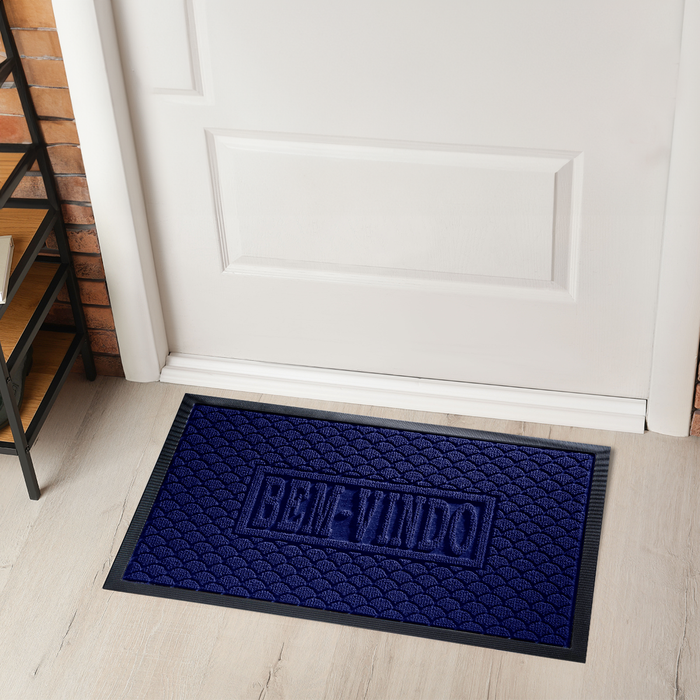 Tapete Antiderrapante Capacho Porta Entrada 40cm X 60cm Emborrachado Bem Vindo Azul
