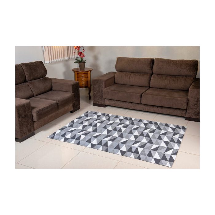 Tapete Antiderrapante Geométrico Jacquard para Sala Quarto 2,00 x 1,36 Ladrilho Preto Cinza