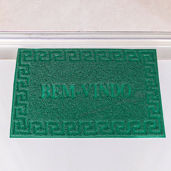 Tapete Bem Vindo Vinil Antiderrapante 90cm x 60cm Verde