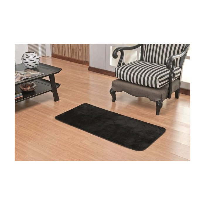 Tapete Capacho 1,00M x 50cm Pelúcia Antiderrapante Preto