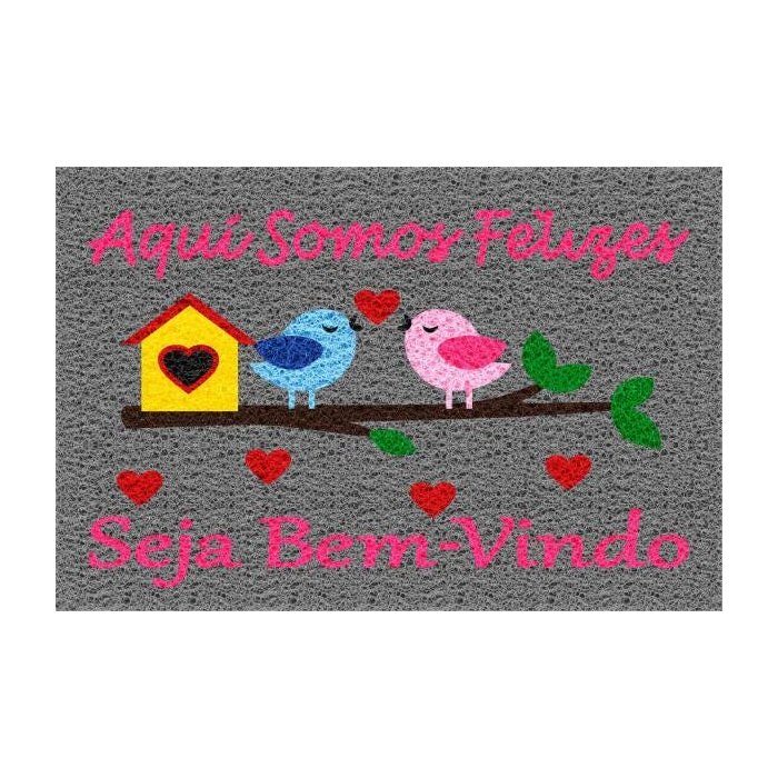 Tapete Capacho 60x40cm - Aqui Somos Felizes Cinza