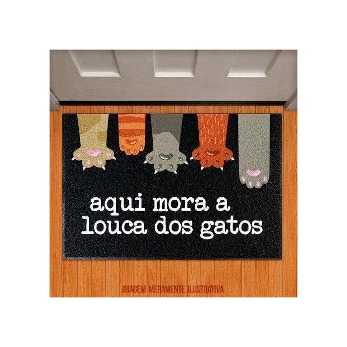 Tapete Capacho - Aqui Mora A Louca Dos Gatos