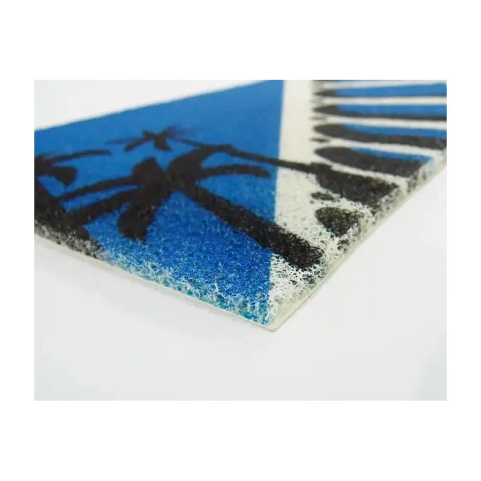 Tapete capacho de vinil entrelaçado com costado antiderrapante.
