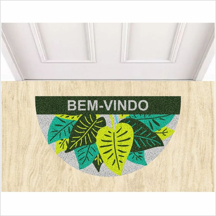 TAPETE CAPACHO BEM VINDO, FORMATO MEIA LUA COM PLANTAS.