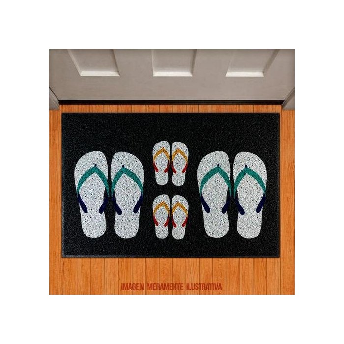 Tapete Capacho Chinelos Azul E Chinelinhos Amarelos
