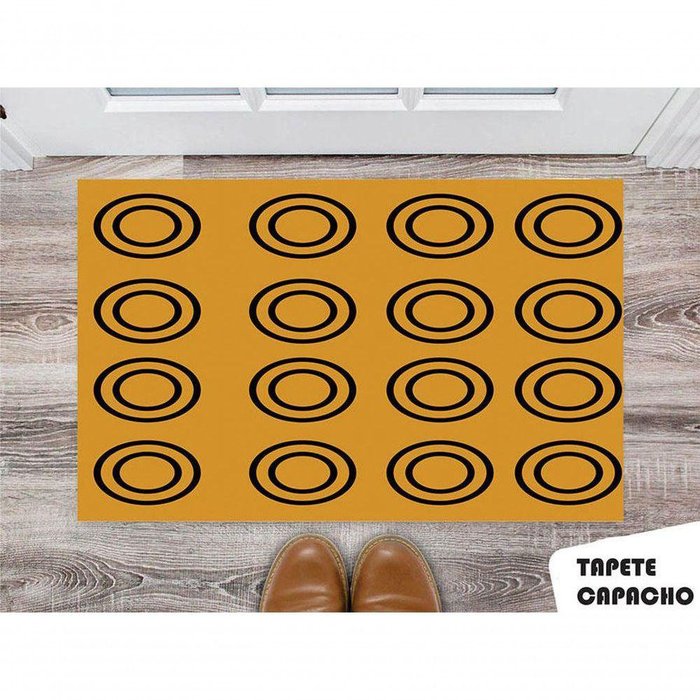 Tapete Capacho Circulos Preto Em Fundo Laranja