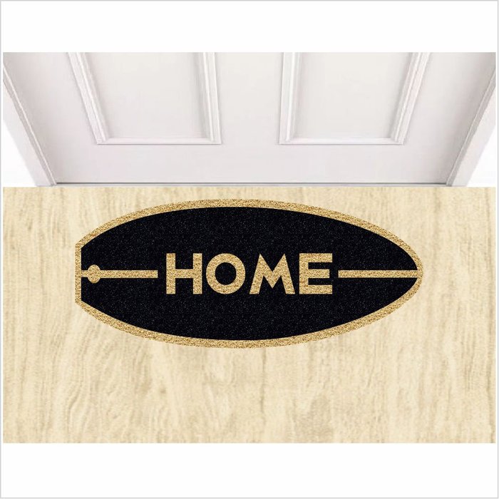 Tapete Capacho Vinil com fibras entrelaçadas e costado emborrachado com arte pinta em tinta vinílica especial.