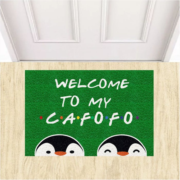 Tapete Capacho Divertido Welcome To My Cafofo Pinguins Lgbt.:verde Bandeira