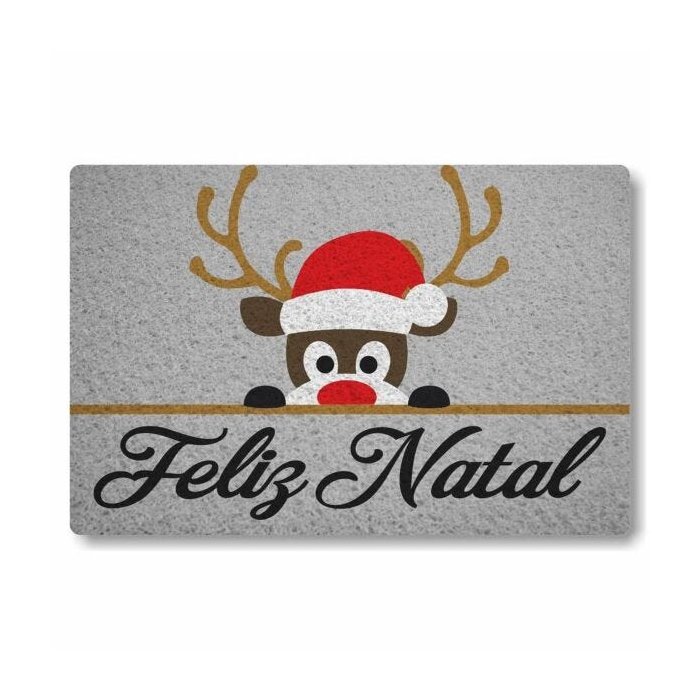 Tapete capacho Feliz Natal Rena 60x40cm cinza