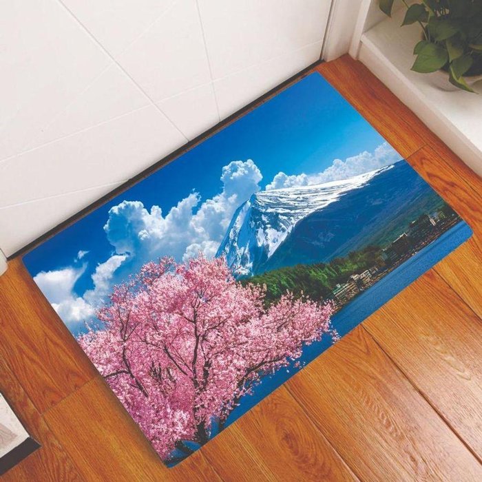 Tapete Capacho Personalizado Divertido Montanha Fuji Flores