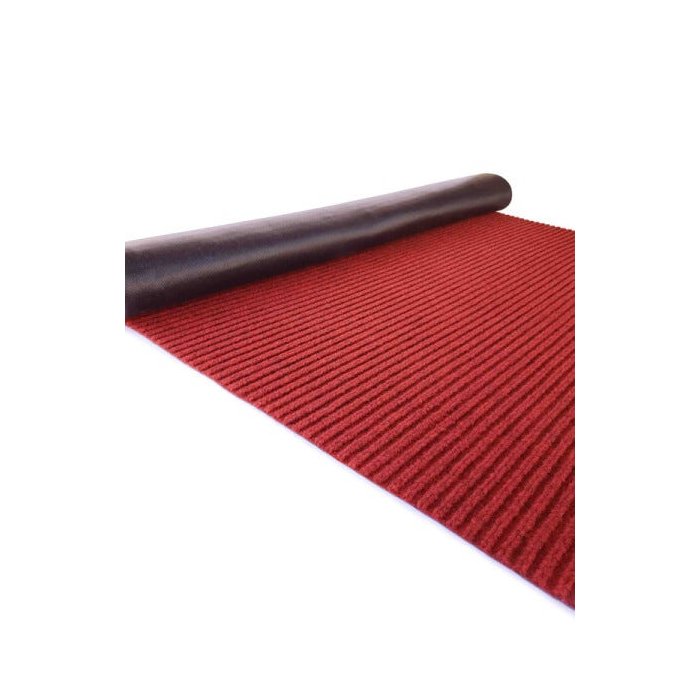 Tapete Capacho Poliester Canelado Base Emborrachado 2x1Mts: Vermelho Escuro