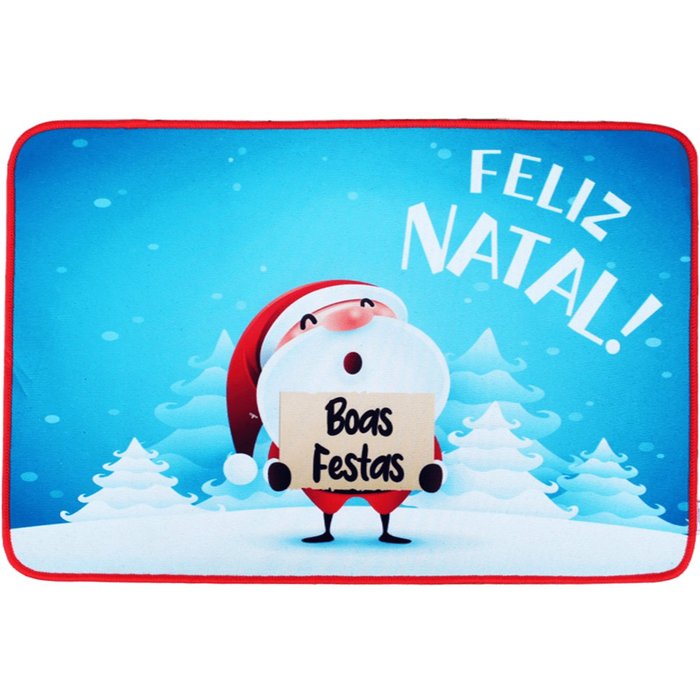 Tapete Capacho Porta Enfeite Boas Festas Decoração 39x59cm Azul, Branco e Vermelho