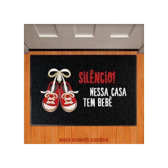 Tapete Capacho - Silêncio Nessa Casa Tem Bebê Vermelho