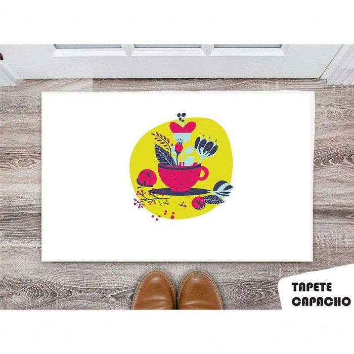 Tapete Capacho Personalizado Xícara Vaso Floral
