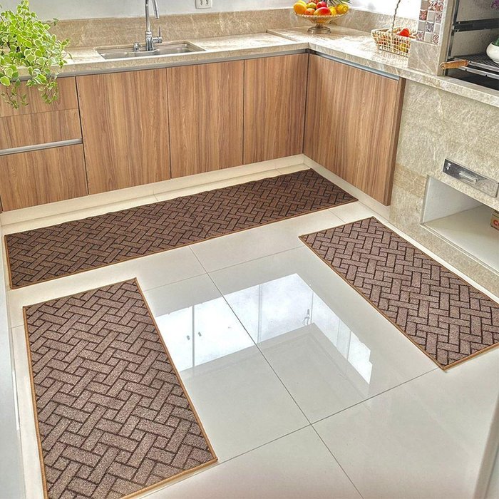 Tapete Carpete Passadeira Cozinha Trama Jogo 3 Peças Marrom