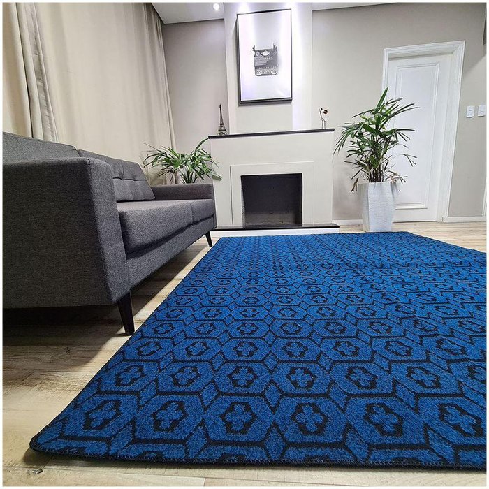 Tapete Carpete Sala Quarto Elegante Geométrico 2,00 X 2,50 Titulo Cor Azul Azul